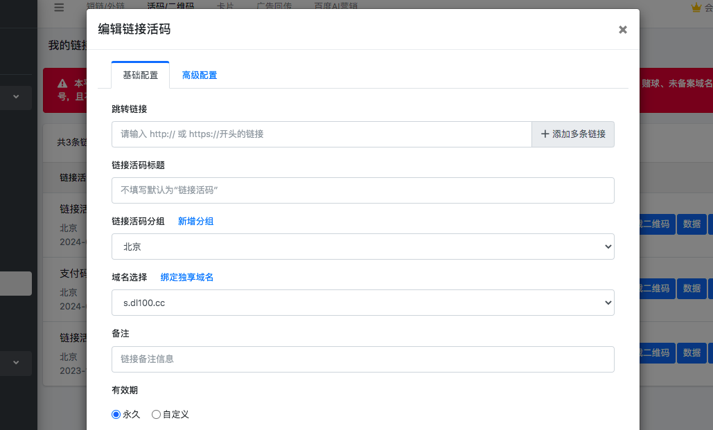- 进入管理后台->活码/二维码->固定链接二维码/li>
